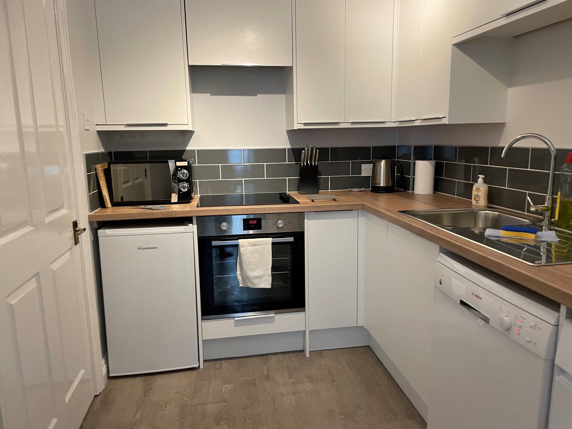 The property offers a large bedroom with king-size bed, wardrobe and large drawers. It also benefits from a large double sofa bed in the living room. There is also a cot available. There is a Bathroom with bath with shower over bath, sink and WC. Hand soap and towels provided. There is a fully fitted and equipped kitchen including electric oven with gas hob, larder fridge with freezer compartment, microwave, dishwasher and washing / dryer machine.